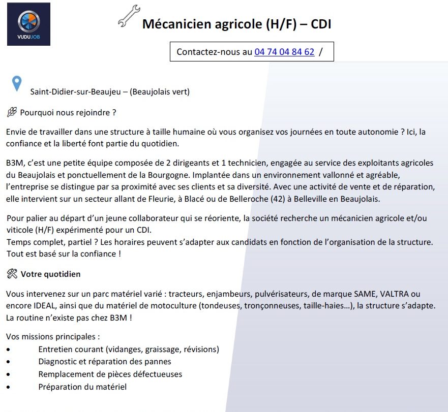 🔧 Mécanicien Agricole / Viticole (H/F) – CDI